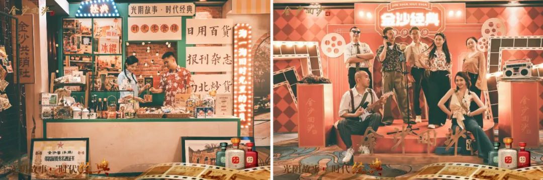 的确良衣铺、人生真理发店、时光照相馆、金沙供销社……金沙酒业将时代中的经典回忆汇聚在经典时光街中,用多种可视可感的吃喝玩乐游的深度体验,带领消费者穿越时光,领略金沙回沙酒的经典之力,品味鎏金岁月中的美好篇章。