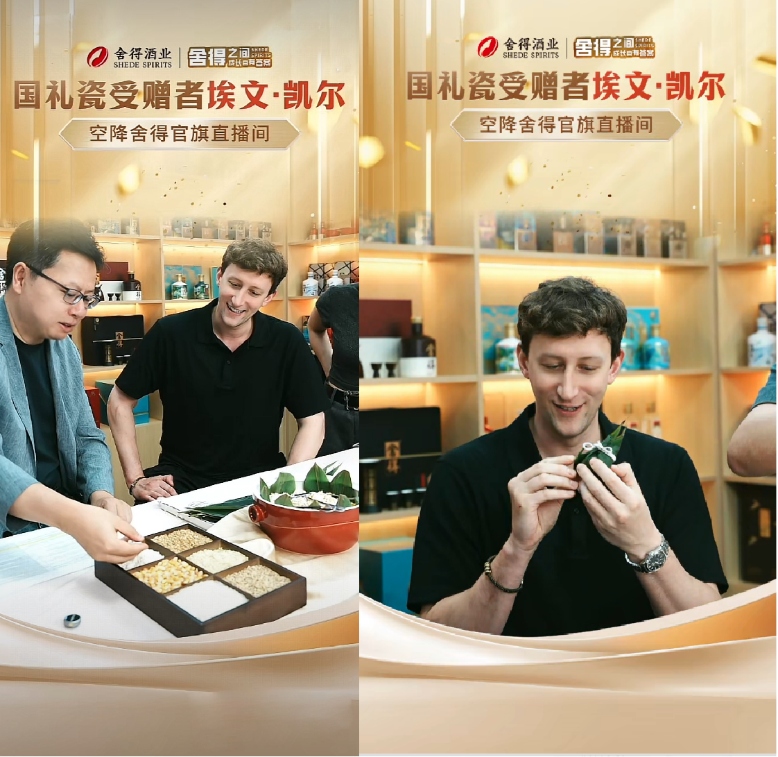 从访谈节目到端午直播间,舍得酒业与埃文·凯尔达成了其在酒业的首次深度合作。借助《舍得智慧人物》文化IP及嘉宾的圈层影响力,舍得酒业顺势覆盖端午节点、618购物节,实现品牌热度与销量的无缝衔接,助推品销协同发展。
