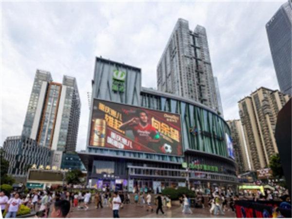 商圈中的海报。重庆啤酒供图