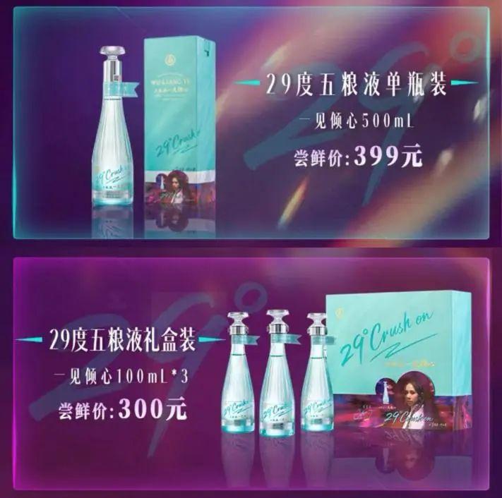 目前,五粮液提供多种产品规格,主力款为容量500ml产品,定价为399元/瓶;亦有100ml的尝鲜款,定价为300元3瓶,以此降低年轻消费者首次尝试的门槛。