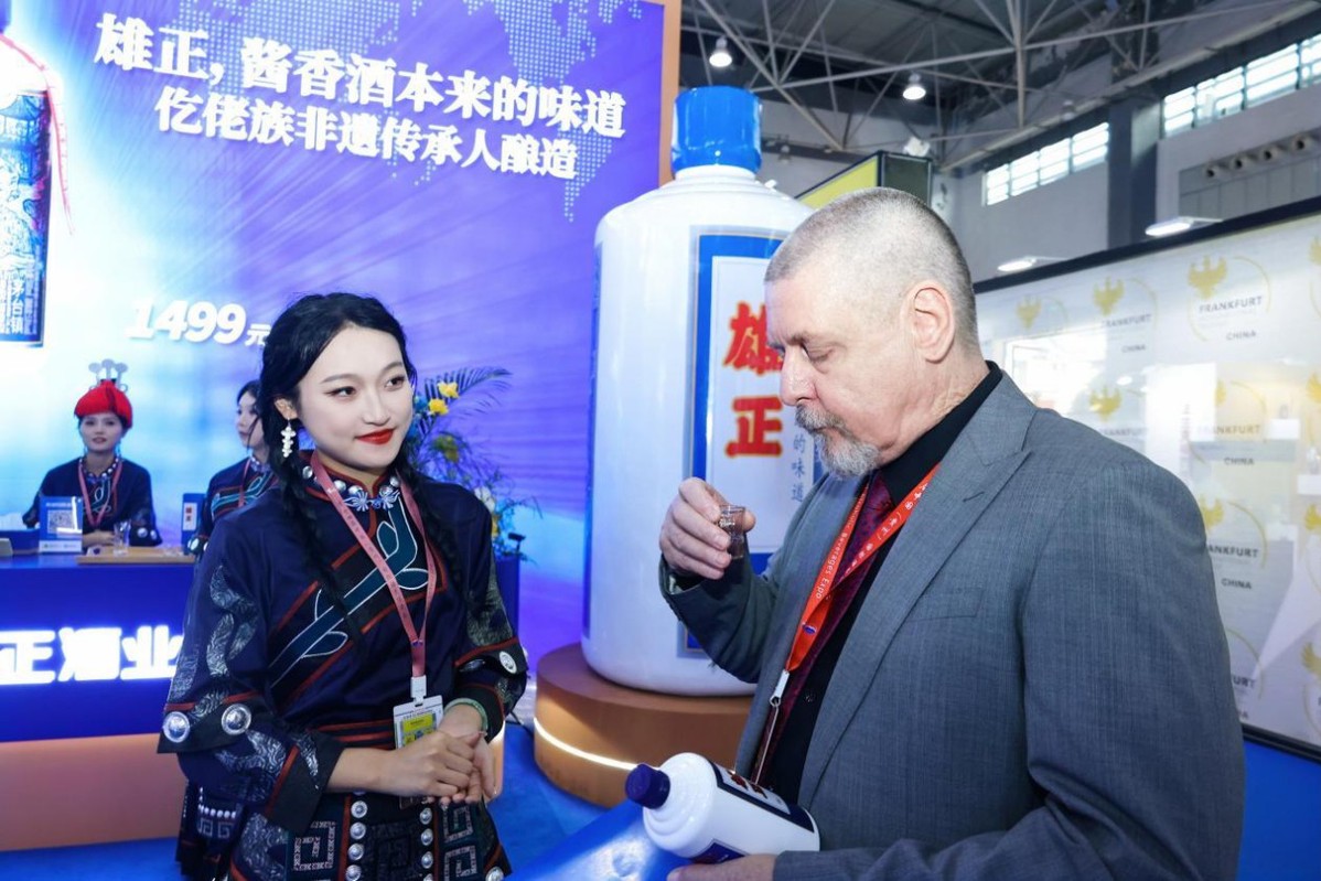 法兰克福国际大奖赛副主席马克·霍克斯在开幕式致辞中表示,酒博会是推动中欧酒文化交流、促进产业合作的重要平台,并表达了对中国酒类进入欧洲市场的期待。会后,霍克斯专程前往雄正酱香酒展厅参观品鉴,对其“酱香酒本来的味道”的品牌定位与文化价值给予高度评价。