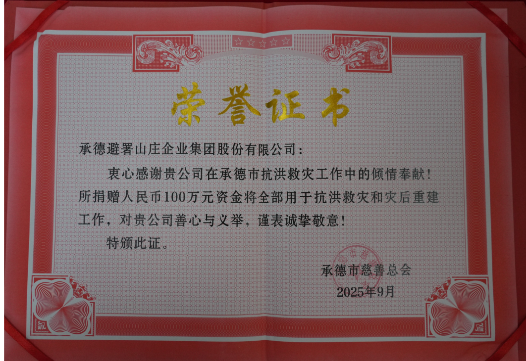 山庄集团获承德市公益表彰:用责任担当书写企业发展新“答卷”