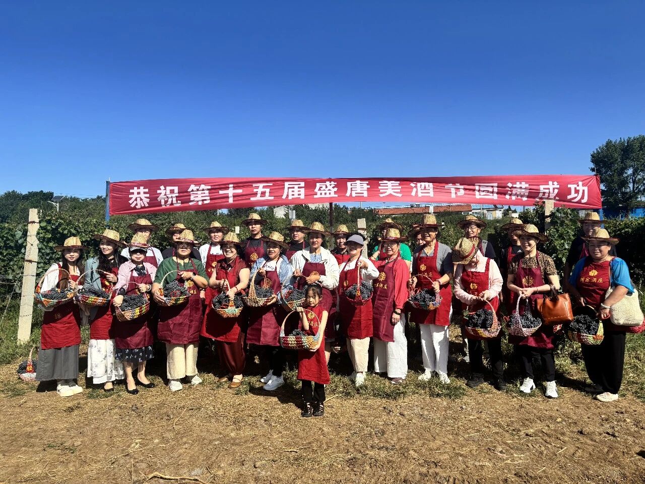 贵宾们在基地亲手采摘酿酒葡萄合影留念