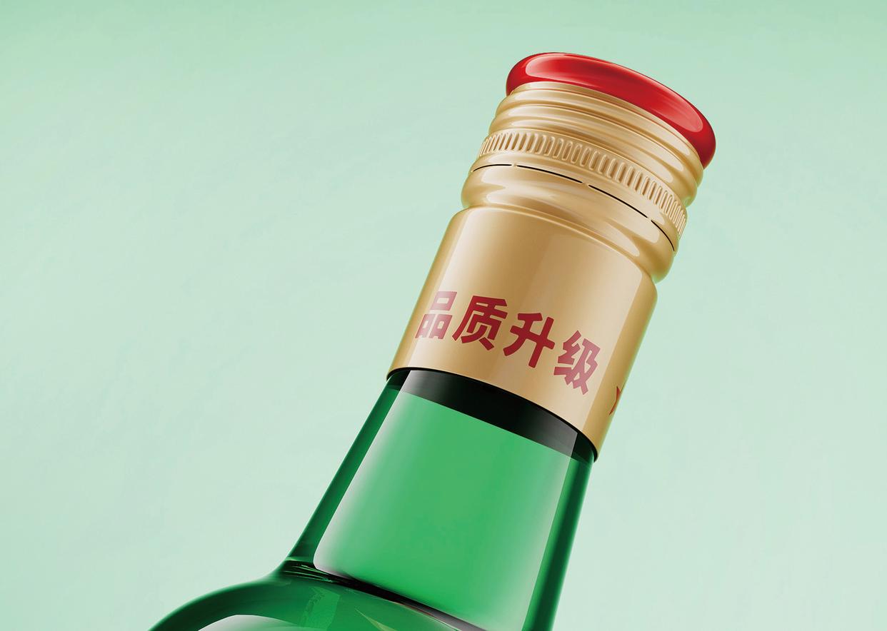 第八代红星二锅头在瓶身美学中亦得到视觉化诠释。第八代红星二锅头将人体工学与东方美学无缝融合,瓶肩采用流体力学设计降低运输破损,同时以高度和直径3:1的黄金比例塑造修长瓶型,更贴合手掌曲线。C位纯粮固态小金标强化了产品的纯粮基因,而新增瓶盖“品质升级”字样则以强对比色直观传递升级信息。整体设计承袭极致精简的留白艺术,但又保留了开盖时复刻老式机械表上链的复古仪式感,唤起消费者对国民级品牌的情感共鸣。