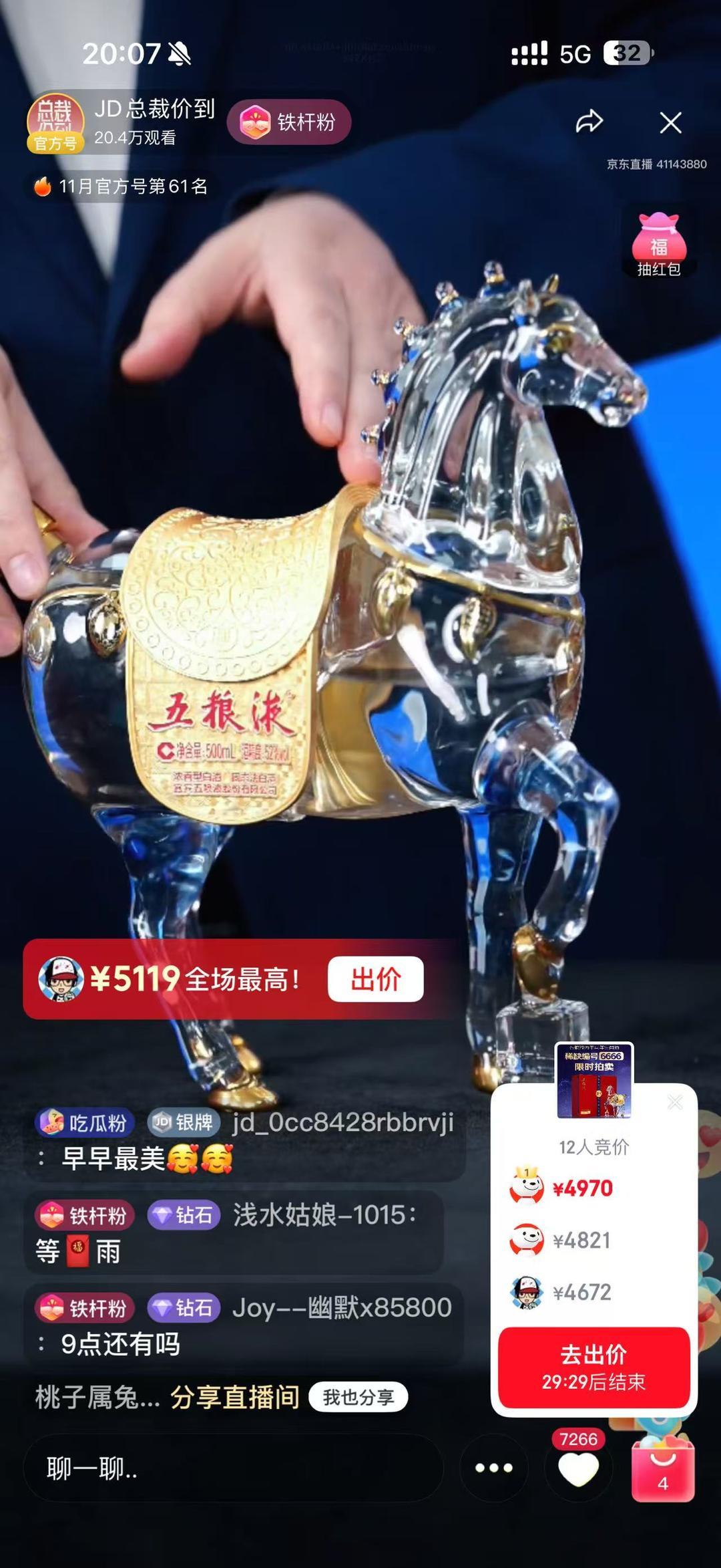 11月27日晚,五粮液丙午马年生肖酒在京东平台重磅首发,同时,直播间三款特殊编号藏品火热开拍,最终编号8888、6666、9999产品分别以29128元、10185元、9971元落槌,用实打实的数据印证了五粮液生肖酒的硬核号召力。