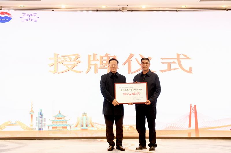 贵州省残疾人福利基金会向贵州茅台赠送“爱心组织”牌匾。武敏摄