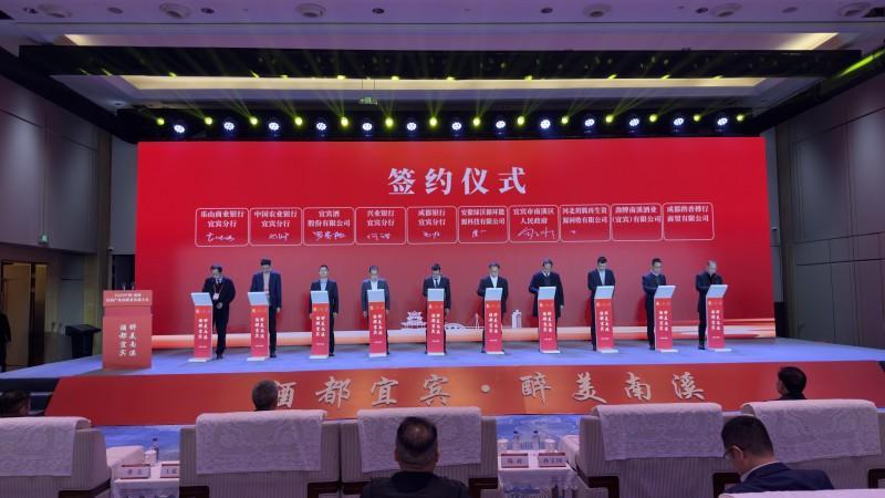 大会期间,宜宾酒股份有限公司与中国农业银行宜宾分行、兴业银行宜宾分行、成都银行宜宾分行、乐山市商业银行宜宾分行,劲牌南溪酒业与成都酌香樽行商贸有限公司,安徽绿沃循环能源科技有限公司、河北玥腾再生资源回收有限公司与南溪区政府签订了合作协议。