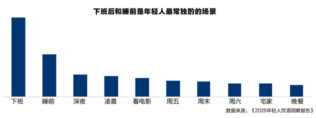 报告将年轻人饮酒场景细分为个人小酌、朋友家庭聚餐和商务宴请三类,每类场景对应不同的人群画像、饮酒动机和酒类选择。