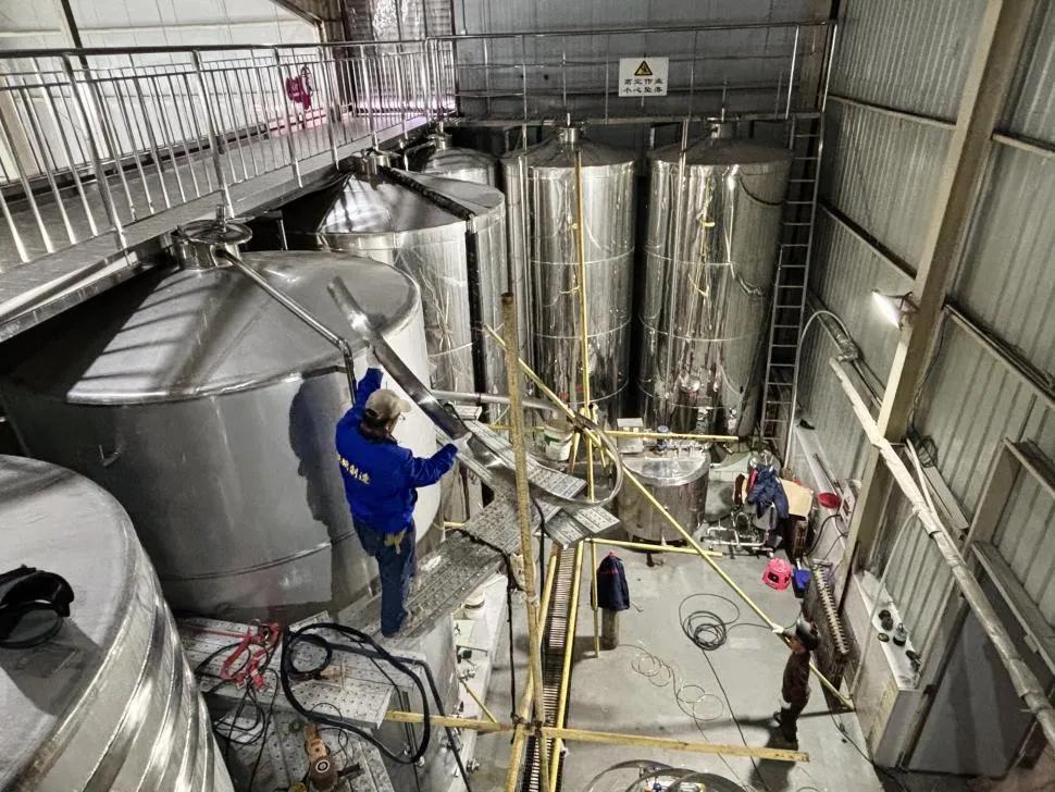 图为工人正在为发酵罐加装冷带。黄芷凌 摄