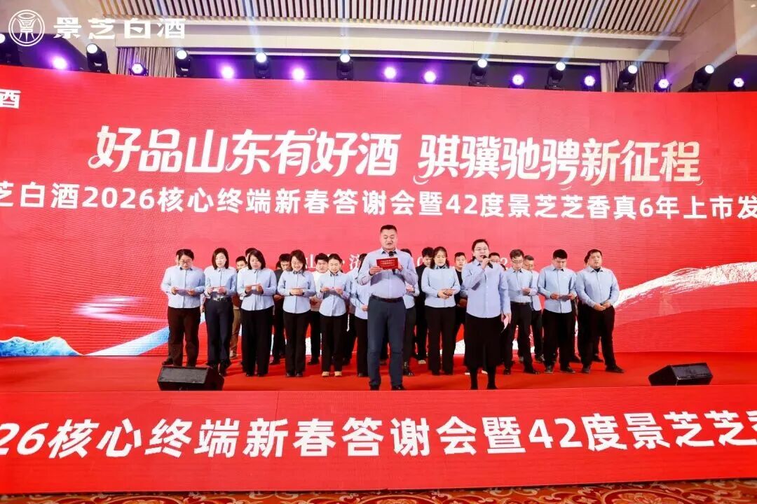 1月22日,好品山东有好酒,骐骥驰骋新征程——景芝白酒2026核心终端新春答谢会暨42度景芝芝香真6年上市发布会在济南山东大厦成功召开,济南区域经销商合作伙伴、核心终端客户等500余人到场参会,厂商携手共谋新一年高质量发展。