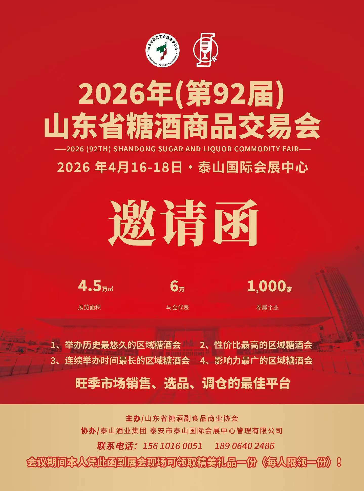 作为鲁酒行业年度盛事,2026年(第92届)山东省糖酒商品交易会将于4月16日-18日在泰安盛大召开。