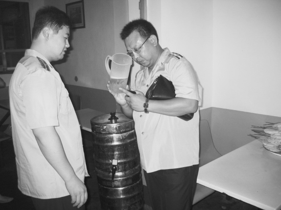 龙口质监局连日来在辖区内开展了生啤专项检查活动。主要检查生啤酒是否符合国家强制性标准,是否存在生产销售未办理食品生产许可证的生啤酒等。同时提醒消费者,优质生啤的外观色泽应呈淡黄绿色或淡黄色,倒入杯中泡沫高而持久。