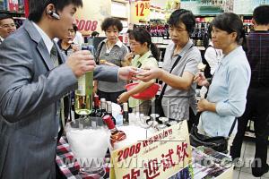 据悉,从本月3日起,家乐福三家店同时拉开“2008家乐福秋季葡萄酒节”帷幕。在为期13天的葡萄酒节期间,家乐福向市民推广来自世界10多个国家,超过1000个品种的葡萄酒。而另一大型超市华润万家也在同期举办长达十几天的葡萄酒促销活动。记者在家乐福万国广场店的葡萄酒品酒会上看到,由于品酒会提供超过100个品种的优质进口葡萄酒给顾客免费品尝,因此吸引了大批市民。而品酒会期间购买进口葡萄酒,一律八折优惠。