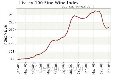 2009年一月,伦敦liv ex 100指数终于出现了众望所归的v型反弹,虽然小涨1.2%,但是在延续了近两个季度的不停跌势之后,毕竟给人以希望。