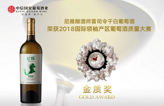 近日,由中国食品工业协会组织的“2018国际领袖产区葡萄酒质量大赛”榜单正式揭晓,仅有7款酒品获得大赛最高奖项——金质奖,中信国安葡萄酒业旗下尼雅酿酒师雷司令干白则是其中唯一干白葡萄酒。