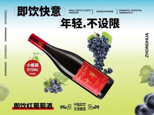 2023年,中华红酒推出首款中华即饮葡萄小酒,无需醒酒,小巧便捷,即开即饮,打破传统思路,顺应时代发展而为,适时发展,不断创新,让葡萄酒走向更多年轻人的市场。