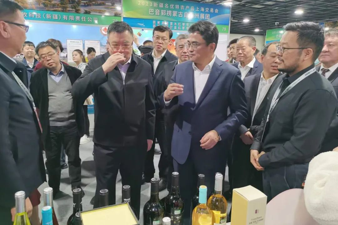 上海市人民政府党组成员舒庆、新疆自治区副主席麦尔丹·木盖提、新疆巴州副州长巴岱等领导亲临展台品鉴,并高度评价金恪十年援疆成果,对于基于沪疆两地产地及市场特点开发的新型低度葡萄气泡酒予以高度评价。