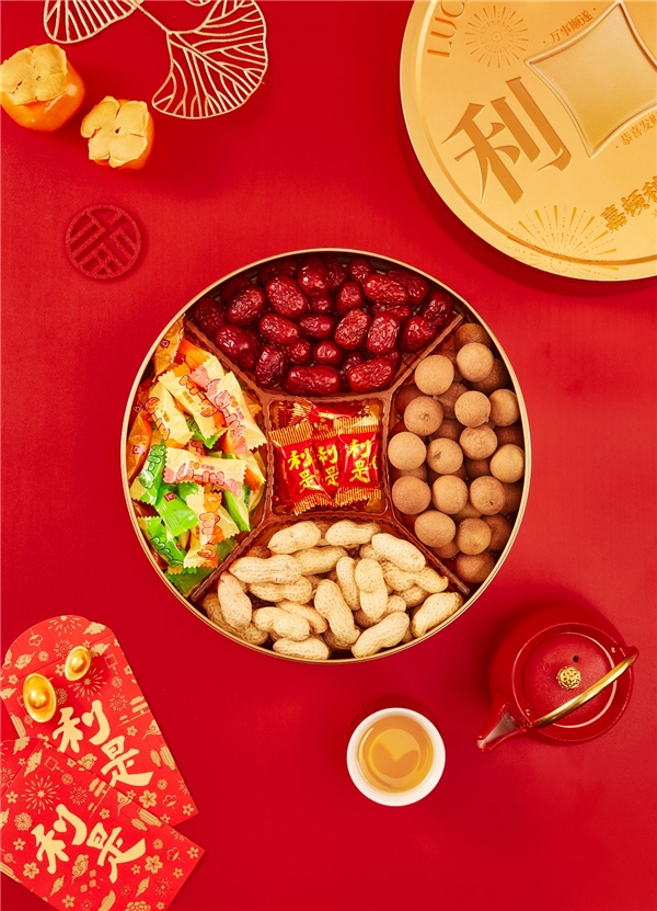 铁罐内含利是糖和Hi-G糖两种糖果,满足全家大小不同口味需求,又可以变身精美的糖果团盒,又是新年糖果盘中的点睛之笔。
