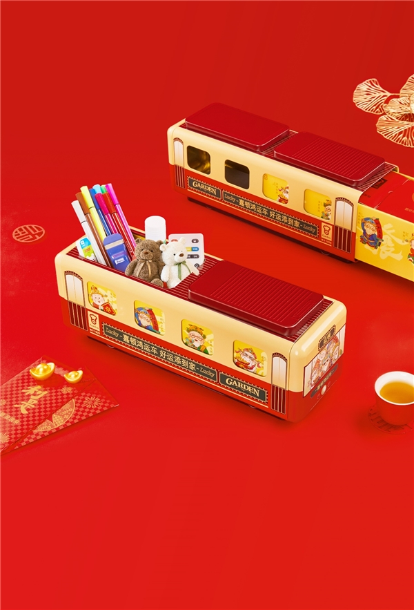 这款鸿运车礼盒以香港经典印记“香港缆车”为设计灵感,将财神送鸿运的美好寓意融入其中,承载着 “好运到家”的诚挚祝福。礼盒内装两款黄油曲奇和利是糖,原味黄油曲奇散发着浓郁的黄油香气,每一口都唇齿留香;抹茶牛乳味黄油曲奇则巧妙融合了浓郁抹茶香与醇正奶香,清新馥郁的味道直沁心底。再加上最正宗经典的利是糖,象征着“吉利”与“带来好运”,为新春佳节增添了满满的喜庆氛围。