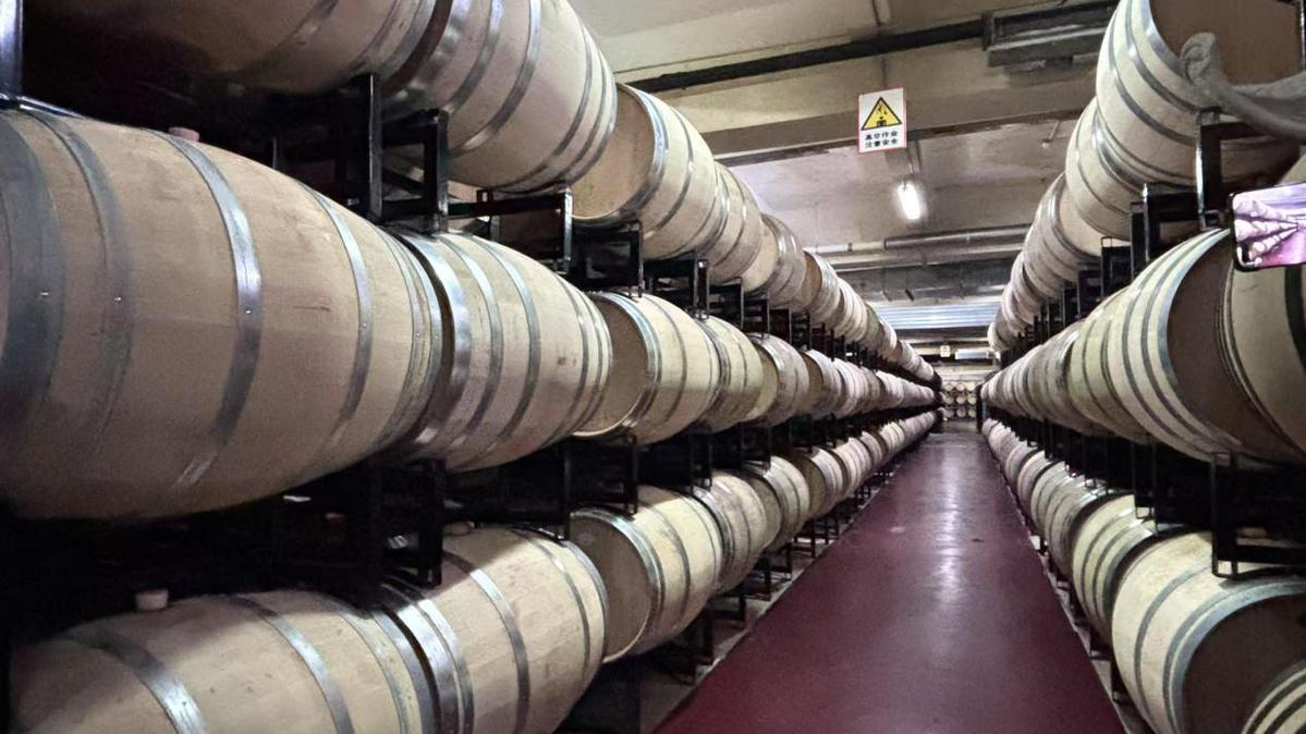酒窖中装酒的木桶。鞠秀琦摄