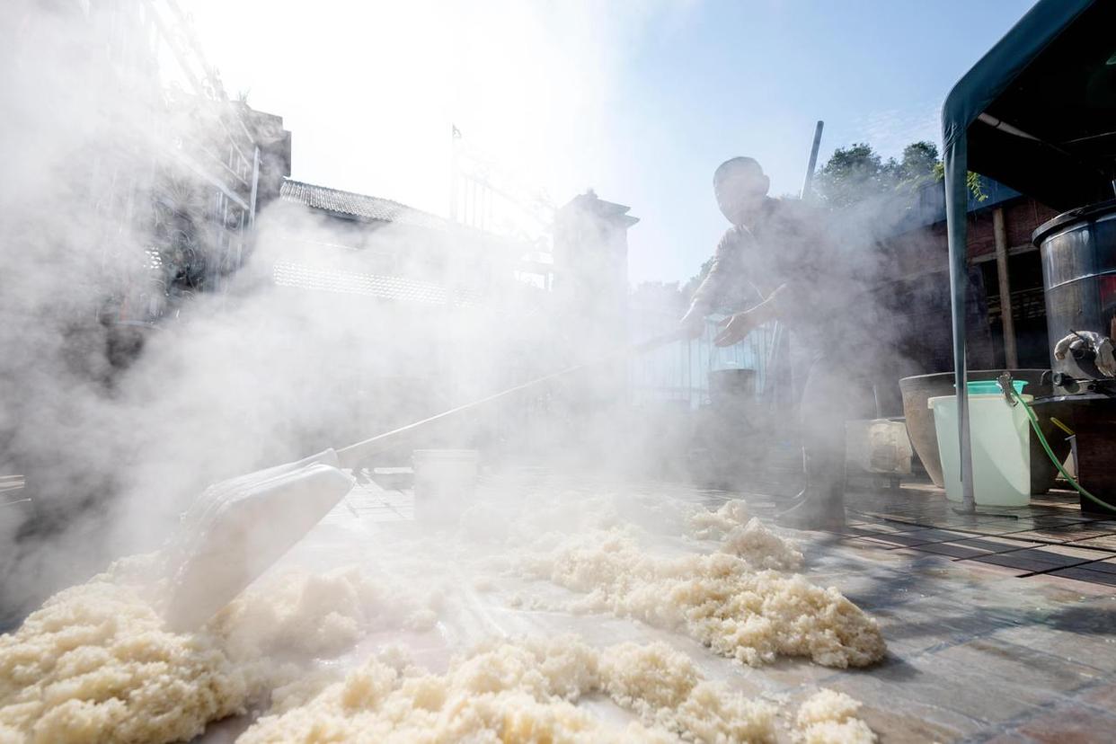 11月24日,湖州市长兴县夹浦镇月明村,村民叶山林通过传统纯手工工艺酿造红曲酒。 江南一带,每年的阳历11月至春节期间,有酿造红曲酒的习俗,寓意新的一年红红火火、顺风顺水。红曲酒