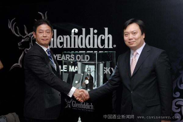12月9日,格兰菲迪50年单一纯麦威士忌进入中国市场首发仪式在北京举行,格兰父子洋酒公司中国区总经理杨朝欣与北京赛特购物中心总经理张岩松共同为格兰菲迪50年揭幕。