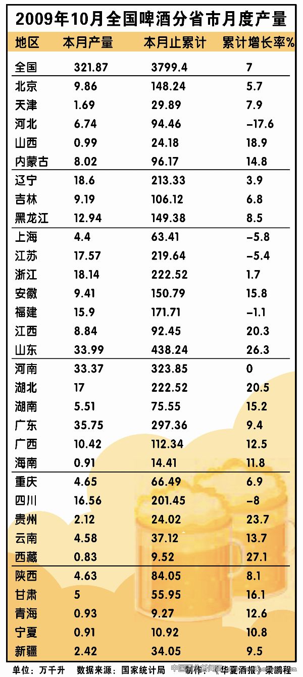 首页 > 酒业资讯 > 其他酒 > 其他酒 10月全国啤酒分省市月度产量 华夏酒报 2009-12-14 10:41 其他酒 2009年10月全国啤酒分省市月度产量 上一篇圣鹿尚品受白领青睐圣鹿养生酒面市 上一篇(12月14日)五粮液、泸州老窖位列深市A股、基金成交金额前20名 新华社信息北京12月14日电 代码 股 名 成交金额 收盘价 1 000768 西飞国际 2757597835 15.990 2 000002 万 相关文章