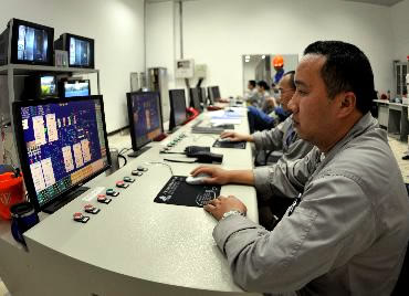 2月25日,广西柳州鑫能生物发电有限公司工作人员在发电车间内值班。 2月25日,柳州鑫能生物发电有限公司工