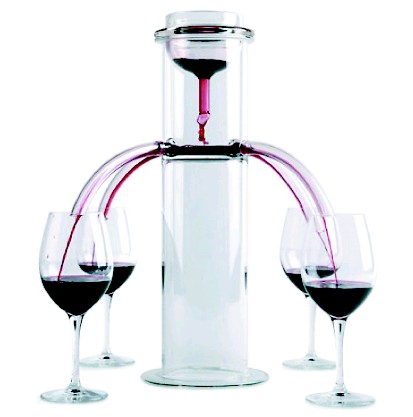 意大利前卫设计公司Acquacalda推出了一款精美的调酒器。它通过气压的作用,能够将倒入调酒器的配料充分混合,调配出味道均匀的鸡尾酒,还可以精准等量地将葡萄酒倒入4只玻璃杯中。这样一款造型优美的情趣酒具,很适合酒吧或家庭使用。