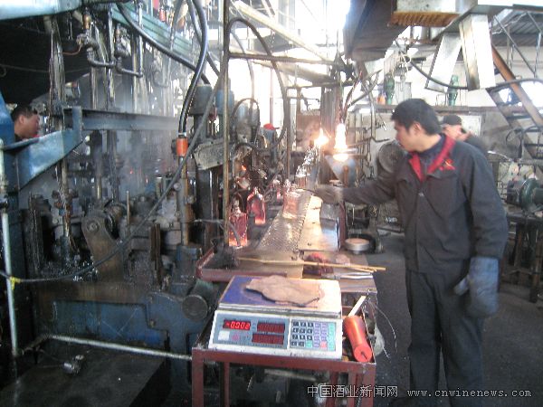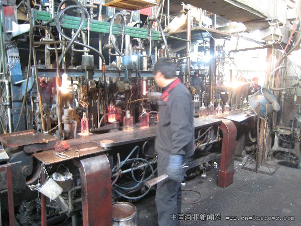 随着全国白酒销售热潮的来临,晨新玻璃抓住机遇开拓创新,新上设计制图、烤花等设备,该公司董事长张海洋告诉记者,手工瓶制作具有严格的要求,每一个瓶子都要过称,通过工人打磨削边等工序做成客户需要的形状。该公司可以制作各种形状的异型瓶,与其合作的酒企遍布全国各地,主要有洋河、金六福、孔府家、金彩山等300余家知名企业,目前,日产量约30万只左右,烤花瓶年产2500万只,综合生产力达到100000多吨。图为生产线一角。