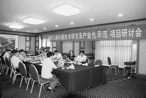 | 在“秸秆乙醇关键技术研究及产业化示范”项目研讨会上,专家们正在研究课题。