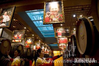 10月31日,奥运会冠军金紫薇(右)等在奥运冠军酒窖参观。 10月31日,冼东妹、孟关良、金紫薇等10多位奥运会冠军来到河北省昌黎县华夏葡园参观奥运冠军酒窖。奥运冠军酒窖内的葡萄酒是这些奥运会冠军认藏后储存在这里的。