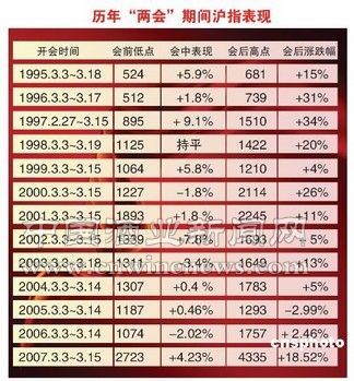 一年一度的“两会”召开在即,股民对“两会”前后的股市走势相当关注。统计显示,历年“两会”期间以及会后一段时间内股指以上升为主。