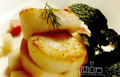 配酒建议:蟹肉混在芒果和玫瑰花瓣中使这道菜有了芳香的特质和酸甜的口感,可选比较芳香和活跃酸度的白葡萄酒相佐,法国Alsace的Pinot Gris 或Riesling葡萄酿的干型葡萄酒为首选,如果不易找到,那新世界的Riesling干白葡萄酒也不失为一个不错的选择。