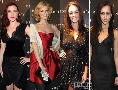 3月24日,法国酩悦香槟 (Moet&Chandon) 在英国伦敦大天空工作室举办一场旨在向电影致敬的派对,邀请到好莱坞大美女斯嘉丽·约翰逊 (Scarlett Johansson) 亮相。斯嘉丽·约翰逊 (Scarlett Johansson) 身着黑色蕾丝晚装,造型既复古又性感。一同亮相活动的还有超模爱丽丝·德拉尔 (Alice Dellal) 、爱娃·赫兹高娃 (Eva Herzigova) ,桑迪·纽顿 (Thandie Newton) 等人。