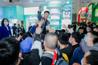 展厅内人潮涌动,经销商现场签约不断;网红主播现场直播,线上线下同步掀盛况;身着蓝色仙裙的小仙女们清...