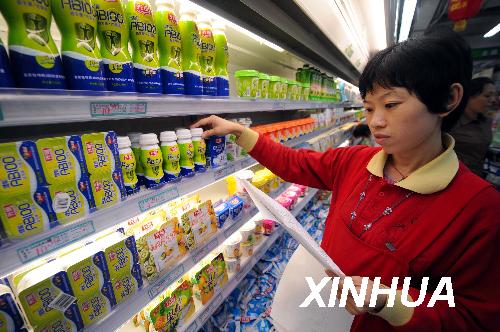 9月27日,石家庄市北国超市怀特店工作人员杜红波对照检验报告,按批次检查超市中正在销售的奶制品。河北省各商场超市积极采取措施,在奶制品销售环节严把质量关,让顾客放心消费。新华社记者巩志宏摄 质检总局26日发布婴幼儿配方乳粉和其他乳粉第十一次三聚氰胺抽样检