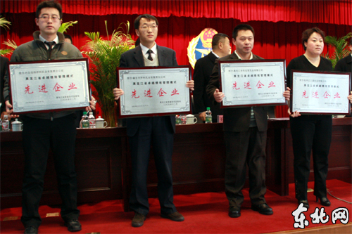 会议还对完达山乳业等15家荣获“2009年黑龙江省乳制品行业实行卓越绩效管理模式先进企业”称号的企业进行了表彰,为黑龙江省首批通过企业良好生产规范(GMPT)和危害分析与关键控制点体系(HACCP)认证的飞鹤乳业等5家企业颁发了认证证书。