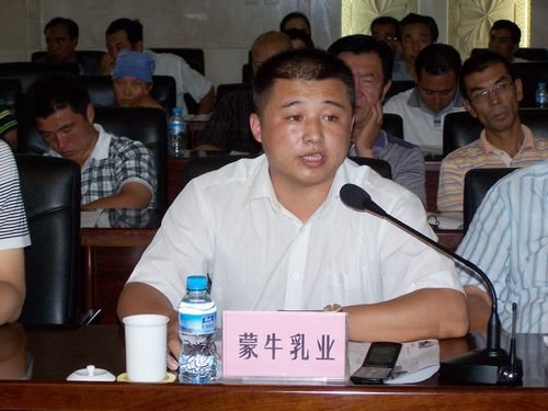 蒙牛乳业银川有限公司总经理于春雷介绍蒙牛乳业银川公司未来发展设想,并就把好乳品质量提出建议。