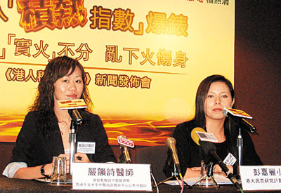 严韵诗表示,分析受访者饮食习惯,发现香港人积热情况严重,98%受访者达积热警戒线,59%人更因经常进食热气食物,令积热指数爆表。她指出,不少人以为热气普遍不用理会,又有人会认为饮凉茶、啤酒或水可解决,亦有人认为边吃热气食物边饮凉茶便不会热气,但以上全为谬误。