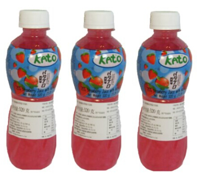 酷特椰肉草莓汁饮料售价5.6/瓶,320ml,这是泰国进口的健康饮品。酷特牌椰果饮料是泰国原装进口的。用25%的水果汁内加入25%泰国新鲜的嫩椰子肉在饮料内, 味道浓郁, 包装可爱。共有7种口味椰肉果汁饮料:椰肉橙汁, 椰肉荔枝,椰肉苹果柠檬, 椰肉菠萝,椰肉草莓, 椰肉芒果, 椰肉葡萄, 味道鲜美, 特别是里面的椰肉, 嚼的非常有弹性, 是人人喜爱的产品。