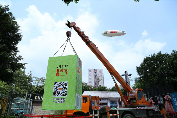 从7月10日早上开始,绿盒王老吉吊车、飞艇、报纸齐上阵,采用悬念广告的方式,引发了网友参与竞猜的热潮。