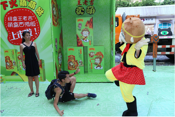 187岁王老吉也卖“萌”?!成为这两天网络热议话题。吊车、飞艇、报纸齐上阵的悬念广告造势,加上萌萌的“孙悟空”卡通形象包装和“萌萌哒”网络语言,以及八大消费场景体验。7月11日,绿盒王老吉推出三款“萌盒西游版”新品,以“卖萌”拉近与消费者的心理距离,在消费者尤其是年轻消费群体中引起热烈反响。