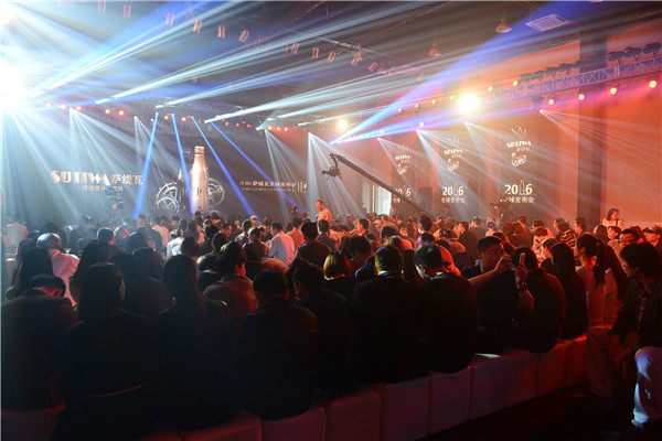 十多个中外模特在炫目的灯光下手捧奢华的黑金双色的主色调SUTIWA萨缇瓦产品登上T台,让在场的每个嘉宾感受到萨缇瓦这款定位于轻奢饮料的时尚与美丽,火麻叶的元素充满了发布会现场的各个角落。
