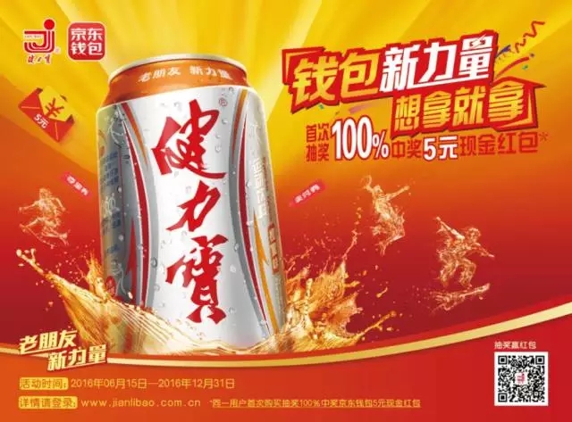 健力宝与京东钱包共同推出“钱包新力量,想拿就拿!”的全国促销狂欢活动,构建起一个多赢的营销生态圈。