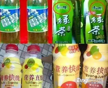 很多人都看到过山寨名牌饮料,它们与知名品牌的字形十分相似,包装也几乎一样,乍一看与正品没什么区别。“旺子”、“营养抉线”、“汇原果汁”、“脉劫”等让不少人惊呼“亮瞎了眼睛”。
