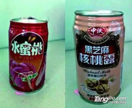 “套罐”的假饮料也不在少数,这类饮料分两种,一是与假加多宝、王老吉事件类似的“挂羊头卖狗肉”,二是旧瓶再利用。去年8月,河南鹤壁一位市民买到一罐“水蜜桃汁”,撕下罐上的一层塑料纸包装后,露出了“黑芝麻核桃露”,内装饮料是透明无色的甜水,疑为“桃水”。