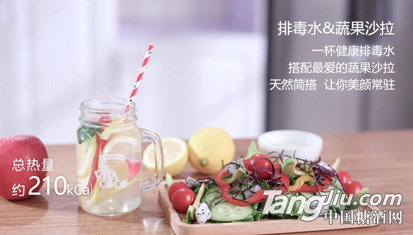 3、排毒水:苹果切小块放在瓶底,柠檬切片铺在苹果上加入冰冻椰子水和少量薄荷叶之后就可以直接饮用了,搭配蔬菜沙拉,效果更好。排毒水具有多种水果,富含维生素等营养元素,搭配椰子水,具有瘦身排毒、天然补水等功效。