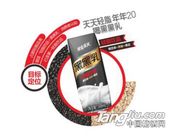 轻脂饮品黑黑乳聚焦都市上班族人群。现代年轻都市人群生活压力大,普遍出现久坐不动,饮食不节,熬夜加班的现象,导致身材走形,体内脂肪积聚,大部分人均处于亚健康状态,我国三高人口高发人群也因此逐渐年轻化。虽然市场上众多保健品、药品都在宣传减肥、清脂、降三高,但大多数国人仍对“膳食轻脂”更为青睐。具有降低胆固醇、降血脂、减少脂肪堆积的“药食同源”食材成为了轻脂健康的放心首选。作为国内首款轻脂饮品,黑黑乳由黑芝麻、燕麦、黑豆三种具有降血脂、降低胆固醇及美容功效的原材料通过科学配比结合而成,同时还添加了其他有益健康轻脂的成分,能有效调节体内脂肪平衡,从而达到轻脂目的,让你享受美味的同时可以拥有健康、轻盈的体态。