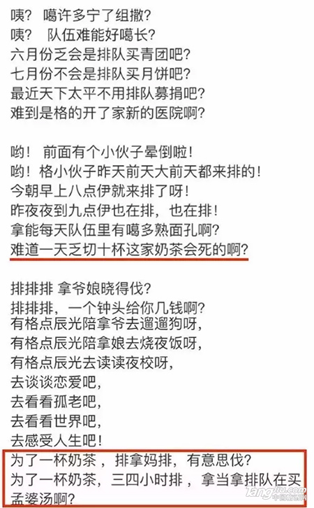 喜茶花钱请人假排队!音乐人写歌怒怼:不吃会死啊
